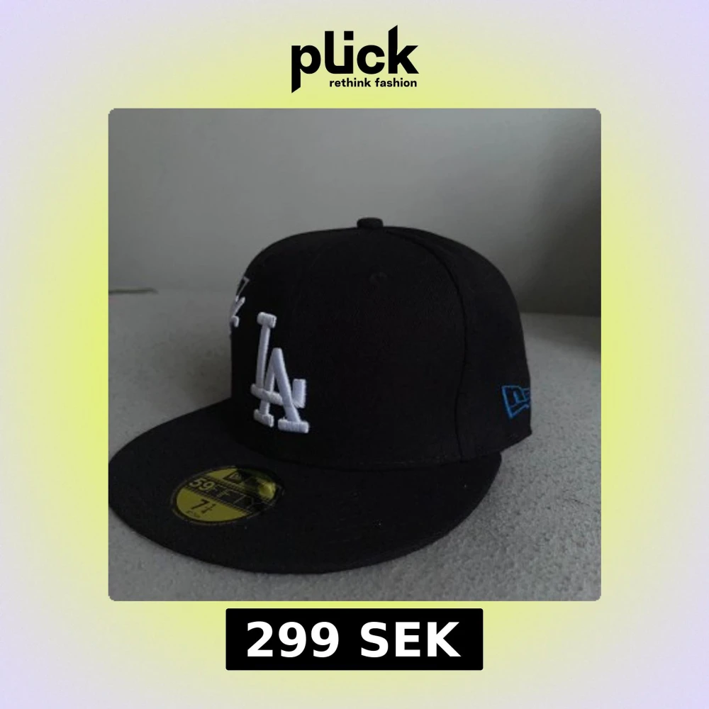 Svart LA Dodgers keps från New Era 59FIFTY med broderad vit LA-logga och Dodgers-märke på framsidan. Platt skärm med grå undersida och blå detalj på sidan. Klassisk basebollstil, perfekt för dig som gillar streetwear.