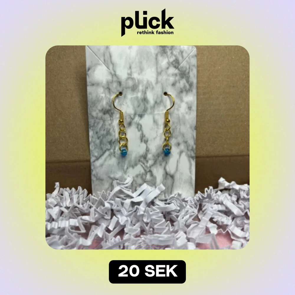 Guld och blått örhänge, den är nickelfri. För mer bilder och information, skriv till mig.