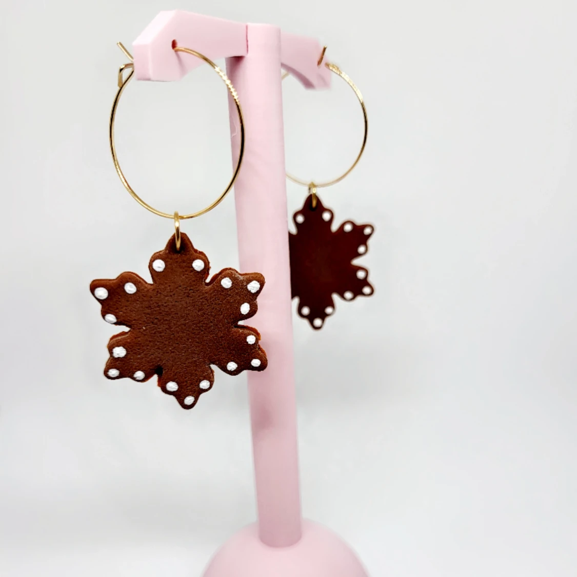 Superfina örhängen i polymerlera. Få med lite julstämning vart du än går 🍪 Själva hängen är i rostfritt stål och pläterat i guld, nickelfria! Går att byta till plast eller clips om så önskas!