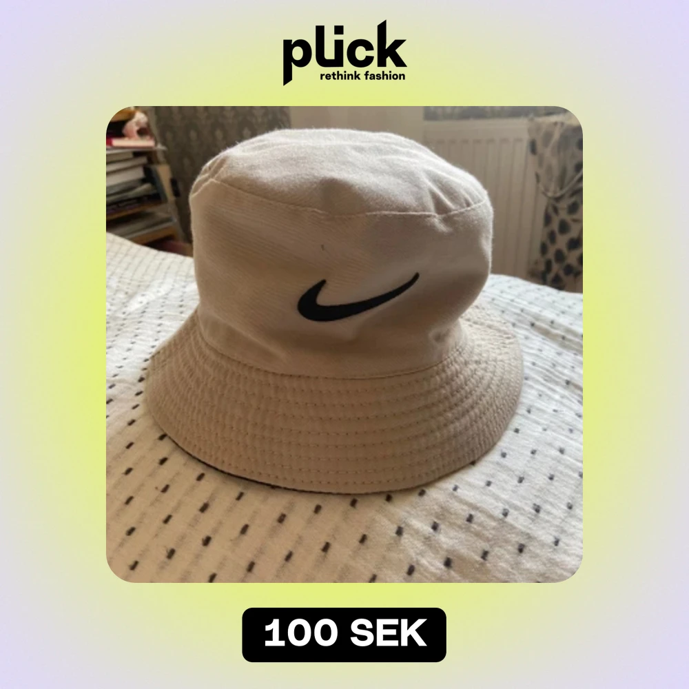 Nike solhatt som man kan välja om man vill ha svart eller beige. Man vänder den ut och in. Aldrig använd.