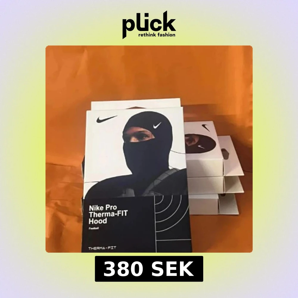 Nike Pro Therma-FIT hood i svart med vit Swoosh-logga. Tight passform som täcker hela huvudet och halsen, perfekt för träning eller fotboll. Tillverkad i mjuk polyester med platta sömmar för extra komfort. Snyggt Nike Pro-märke framtill.