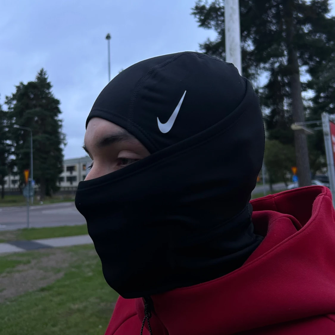 Nike Pro Therma-FIT balaclava i svart med vit swoosh-logga. Tight passform som täcker hela huvudet och halsen, perfekt för kalla dagar. Tillverkad i mjukt och stretchigt syntetmaterial som andas och håller värmen. Snygg och sportig look för träning eller utomhusaktiviteter.