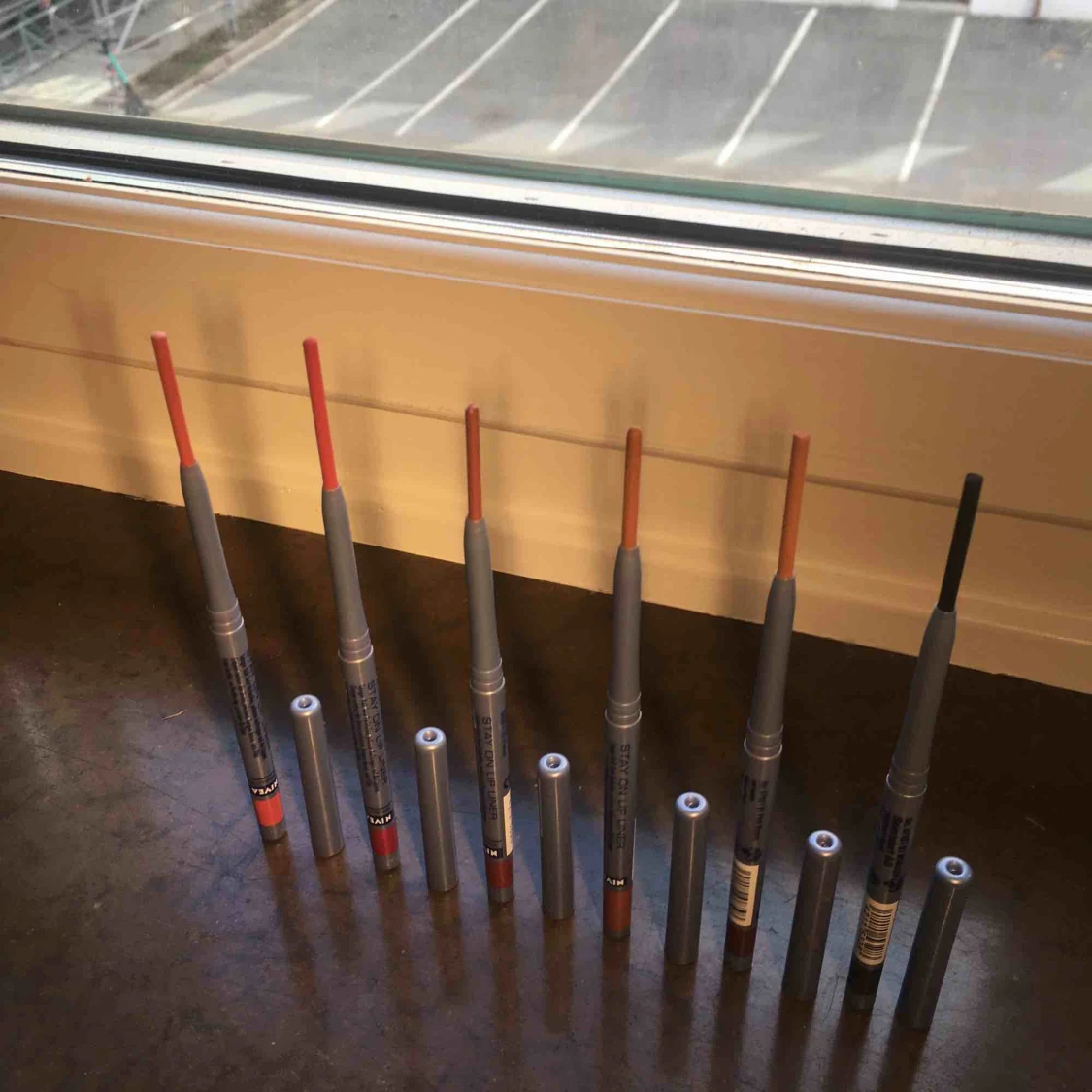 Lip linet från Viva La Diva...Nästan nya men bara använd fåtal gånger. Tillverkad i Frankrike. Nr1 från höger.......1 är alltså den mörkaste. Blev lite dåligt ljus men från höger är det först:midnight,Pink Brown,nude Brown,Granberry,fuchsia,soft Pink.