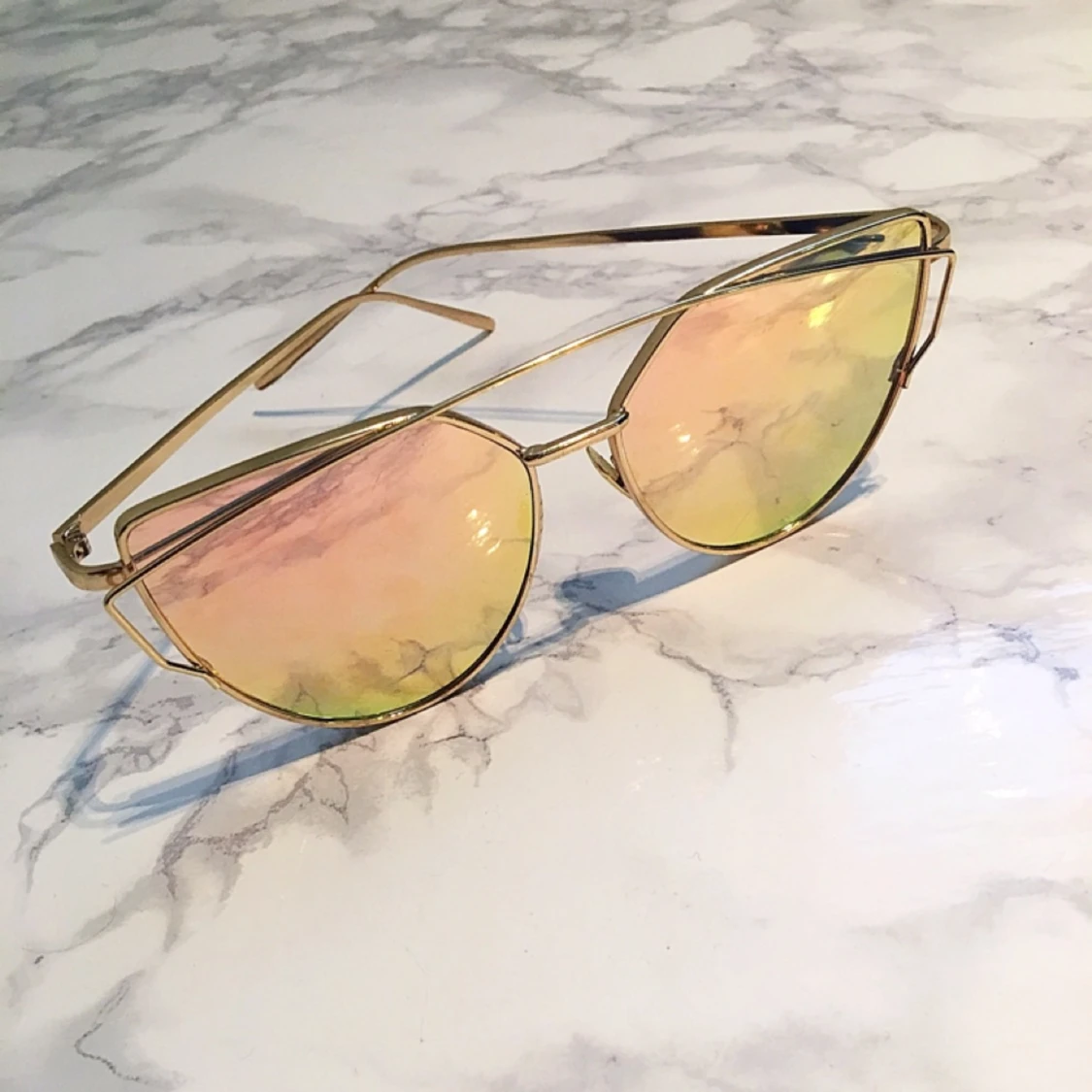 Snygga solbrillor i roséguld med spegelyta