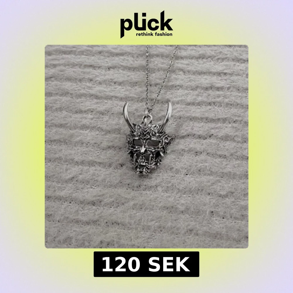 Rostfritt halsband med en 50 cm kedja och ett 2,5 × 2 cm demonmask-hänge. Minimalistiskt och nickelfritt
