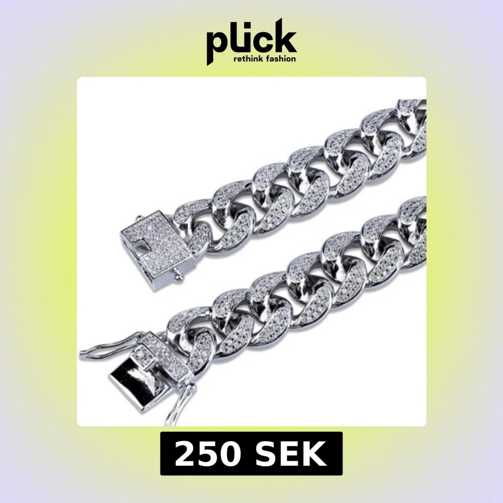 Snyggt armband i silver med glittriga detaljer. Armbandet har en robust kedjedesign och ett fyrkantigt lås dekorerat med små stenar. Perfekt för att ge en extra touch av glamour.