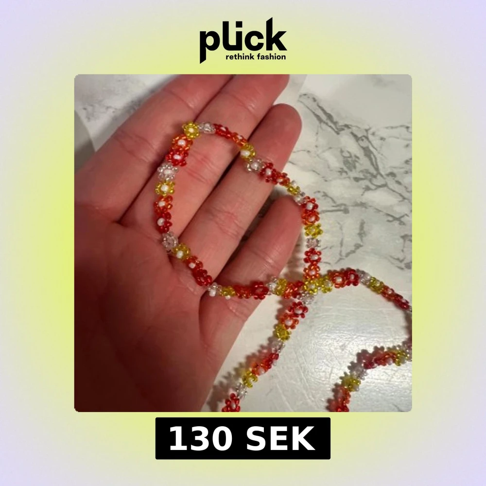 Superfint handgjort halsband med blommor! Halsbandet är gjort av glaspärlor och med elastisk tråd vilket gör att det är enkelt att dra över huvudet ☺️ Vid frågor är det bara att skriva 🥰