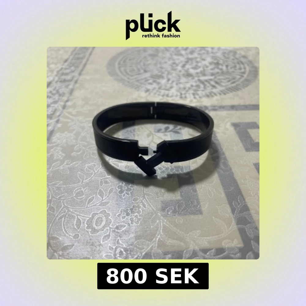 Stilrent svart armband med cool H-formad låsdetalj framtill. Armbandet har en modern och minimalistisk design med slät yta och är tillverkat i ett hårt material som ger en edgy känsla. Perfekt för dig som gillar att sticka ut med accessoarer som har en unik twist.