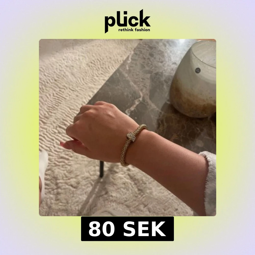 Snyggt armband i guldton med flätad design och en glittrig, stencovered detalj i mitten. Armbandet har en rund form och känns både trendigt och stilrent. Perfekt accessoar för att lyfta din outfit med lite extra bling.