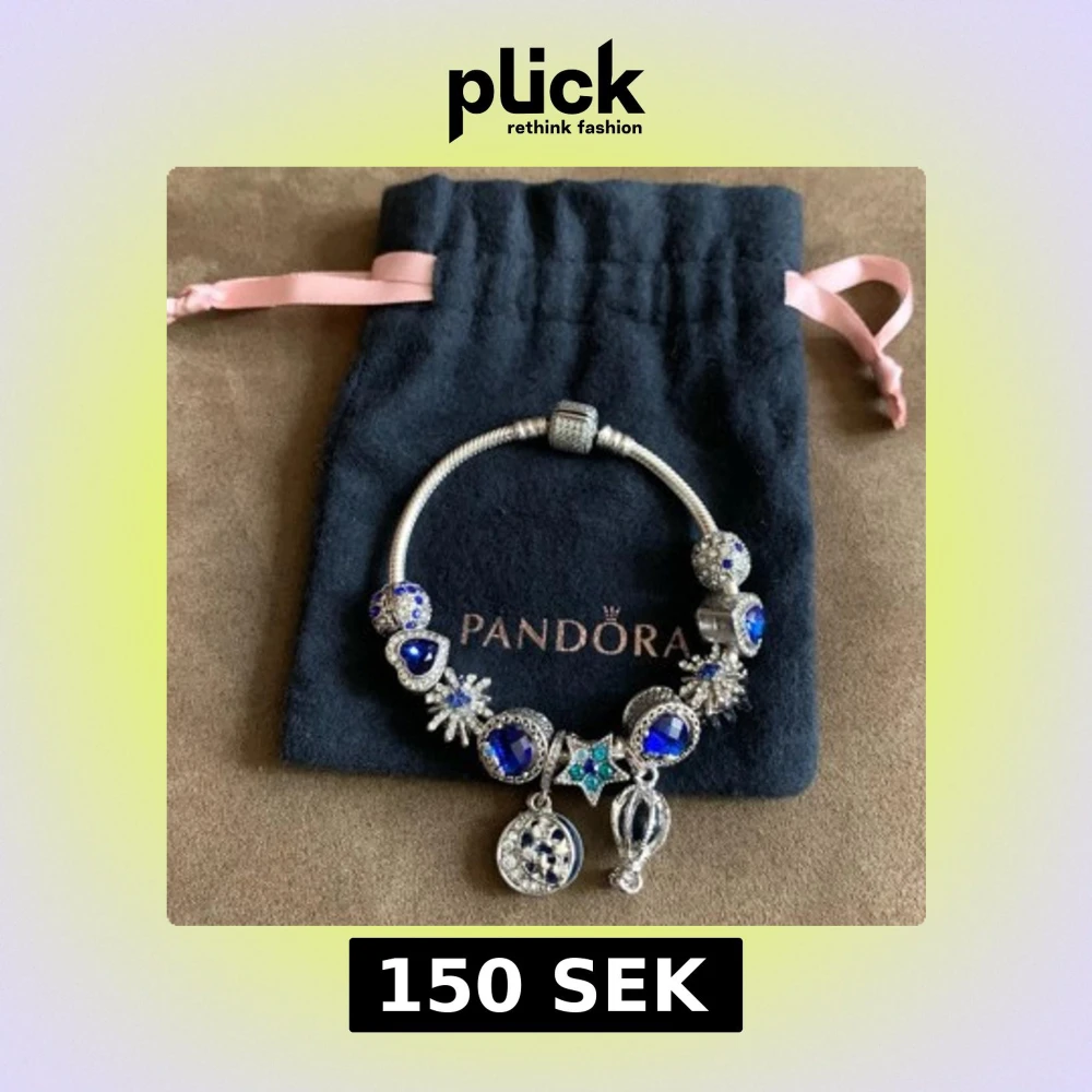 Unikt Pandora armband i silverfärgad metall med flera blå och gröna berlocker i olika former som hjärtan, stjärnor och snöflingor. Armbandet har detaljer med glittriga stenar och hängande charms som ger en cool och personlig vibe. Perfekt för dig som gillar att sticka ut med dina accessoarer.