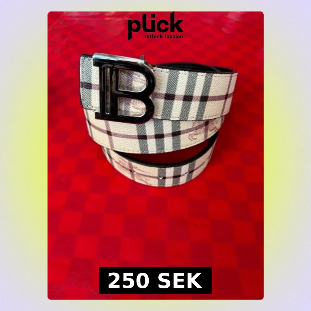 Rutig Burberry-inspirerad bälte med B-spänne