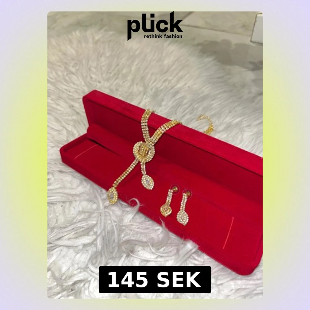Säljer en glittrig väst i guld med strassdetaljer som ger en lyxig vibe. Västen har ett unikt mönster med gnistrande stenar och en snygg v-ringad form. Perfekt för dig som vill sticka ut och addera extra bling till din outfit. Lådan är inte med