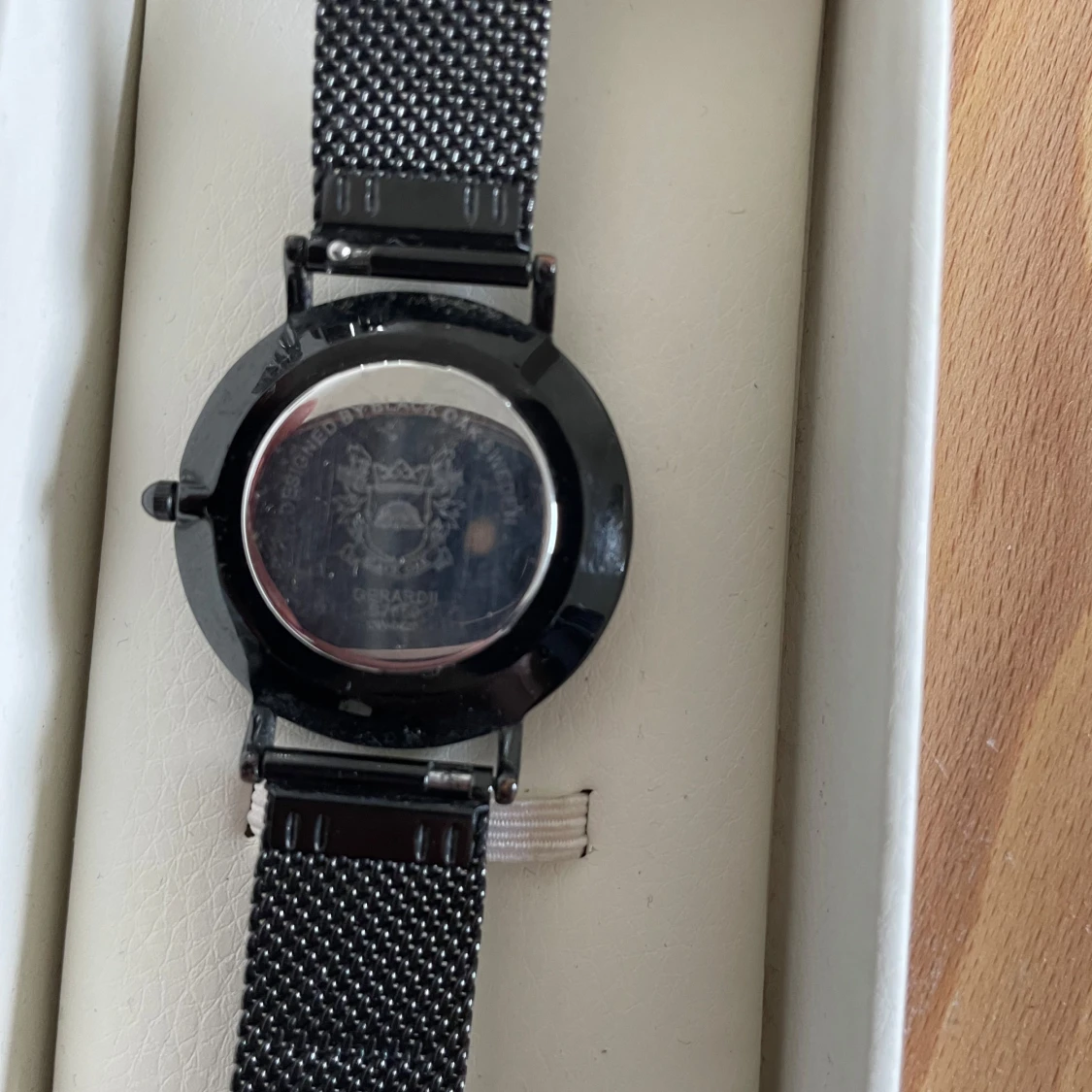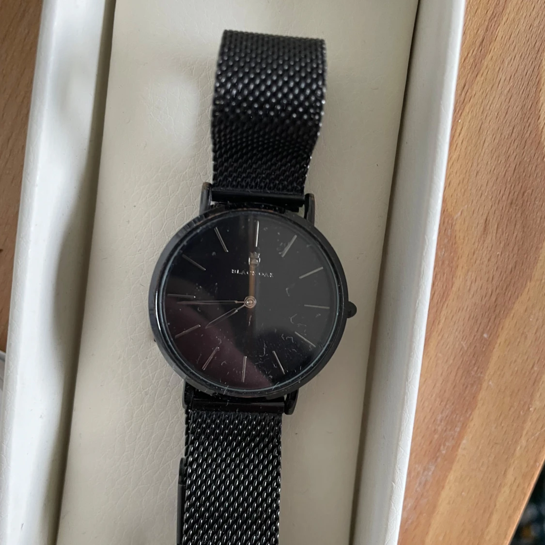 Stilren svart klocka från Black Oak med mesharmband och minimalistisk urtavla. Perfekt för en elegant look.