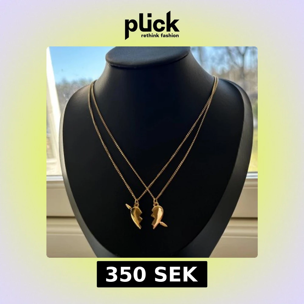 Inspererat halsband av Maria Nilsdotter. Två matchande guldhalsband med delade hjärthängen. Perfekt för att dela med en vän eller partner. Kedjorna är 40cm med går att förlänga med ytligare 5 cm. Vid mer frågor är det svar att höra av sig ☺️