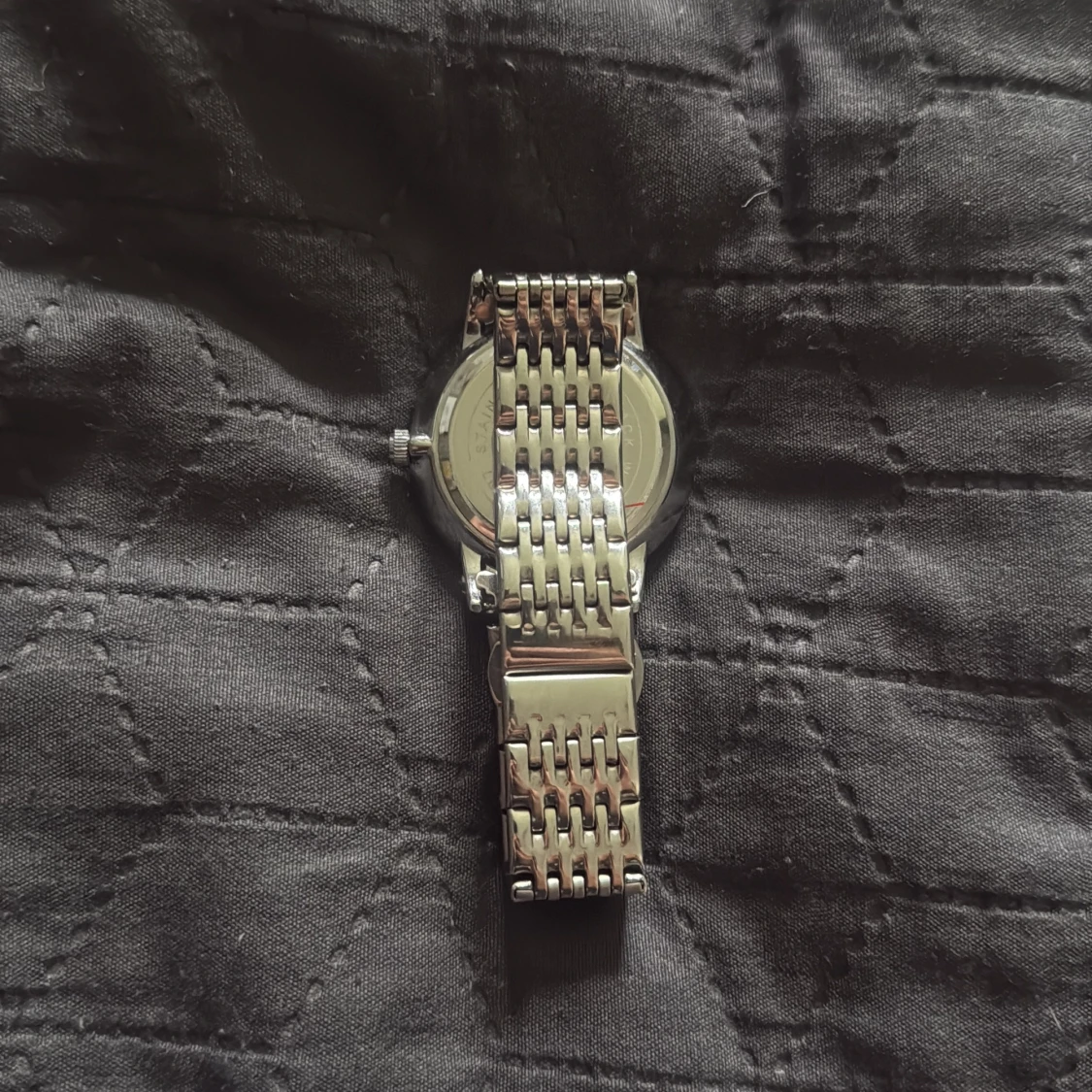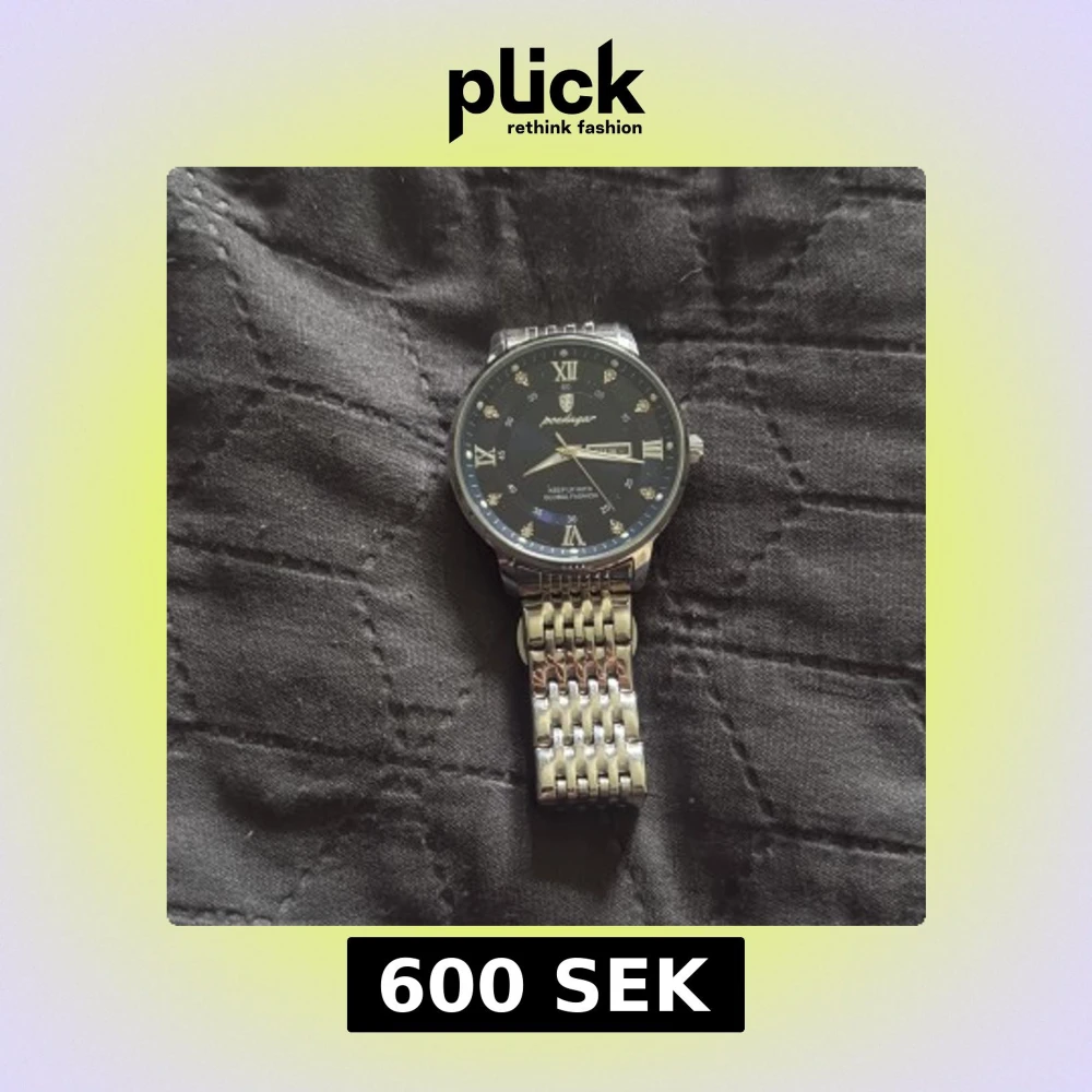 Stilren klocka från Pedagar med svart urtavla och romerska siffror i guld. Armbandet är i blankt, flätat rostfritt stål och boetten är rund. Urtavlan har små kristalldetaljer vid varje timmarkering och datumvisning. Perfekt för dig som gillar klassisk design med en modern touch.