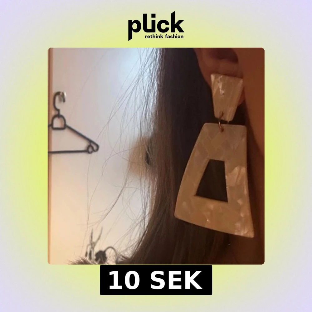 Snygga vita örhängen i geometrisk design med en triangulär topp och en större rektangulär del med ett utskuret centrum. Perfekta för att ge en modern touch till din outfit.