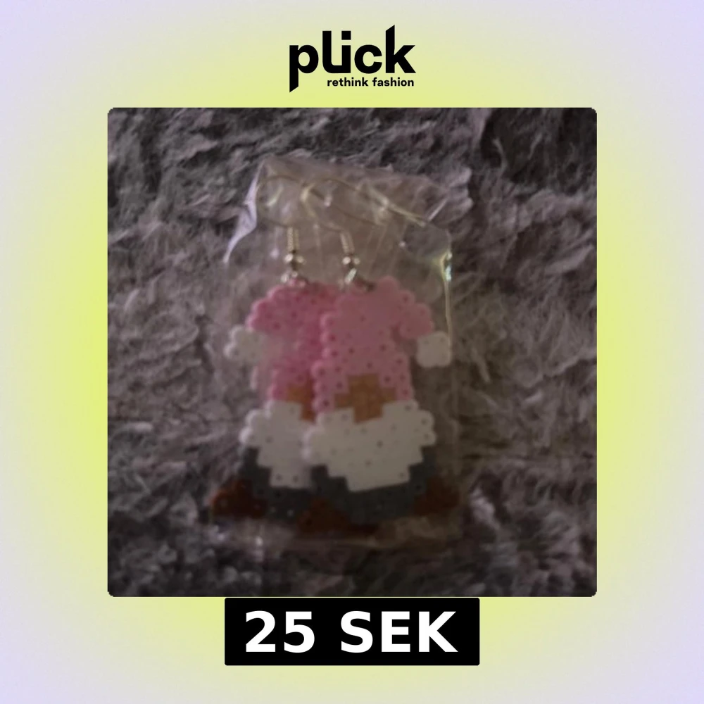Unika örhängen i form av små tomtar gjorda av pärlplattor. De har rosa mössa och tröja, vit skägg och detaljer i grått och brunt. Perfekta för att ge din look en lekfull och julig touch!