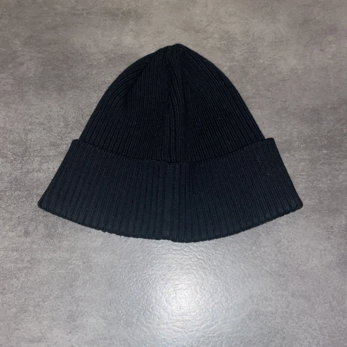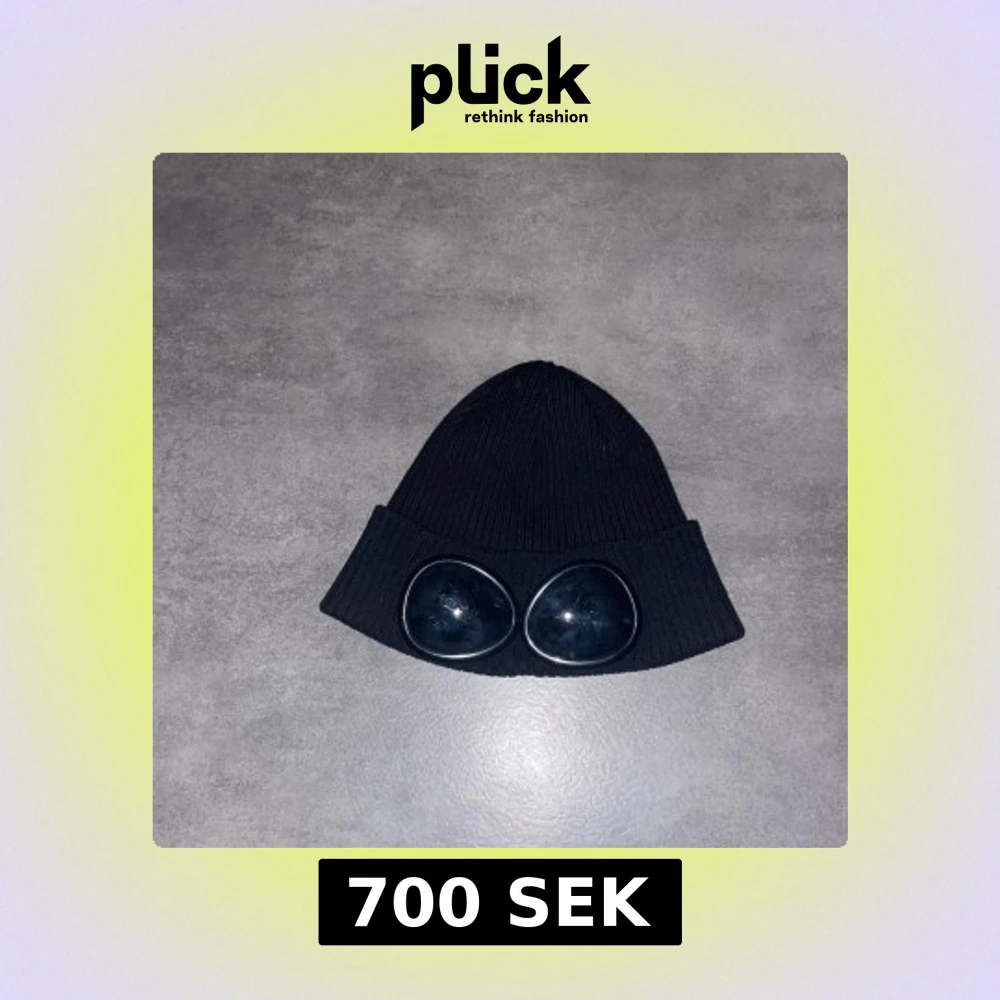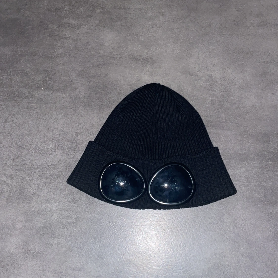 Snygg svart ribbad mössa från C.P. Company med unika glasögondetaljer framtill. Perfekt för att hålla stilen under kyliga dagar.