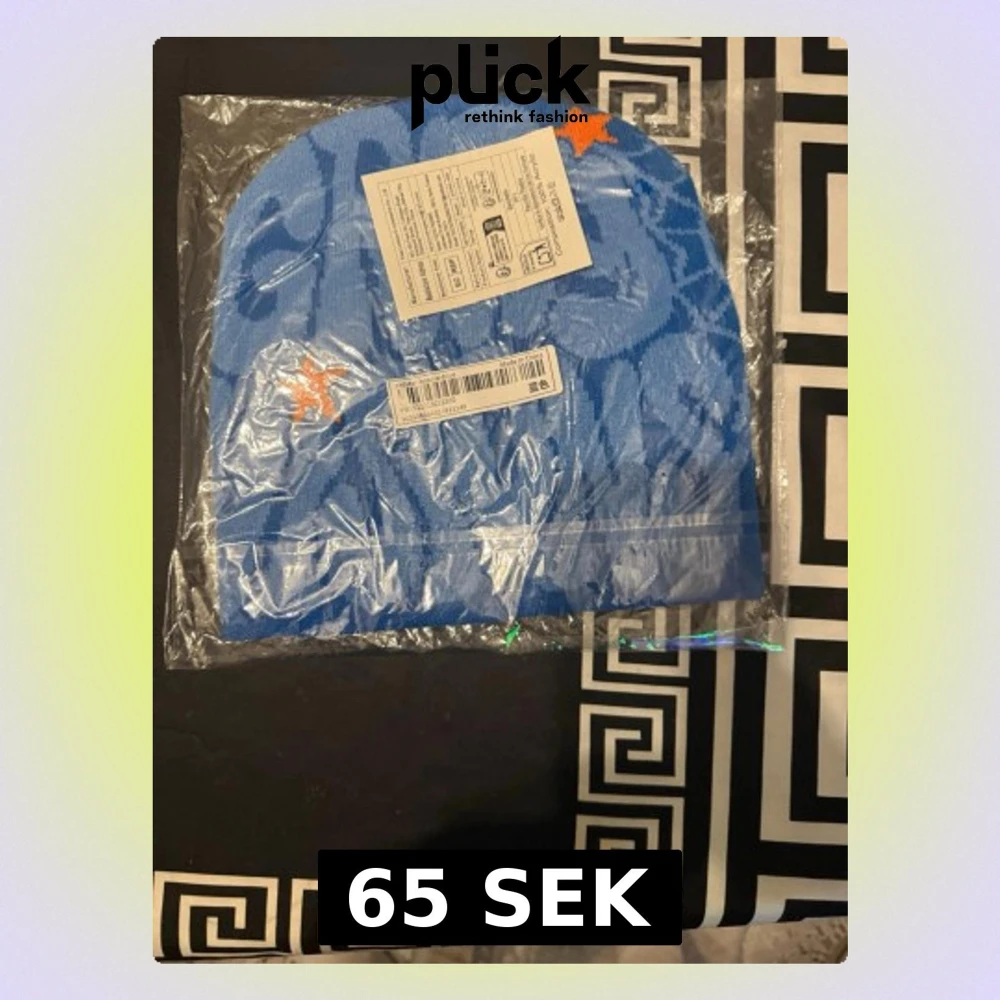 Säljer flera stickade mössor i olika färger med coolt grafiskt tryck och stjärndetaljer. Finns i blått, vitt, rött och lila med kontrasterande text och mönster. Perfekt accessoar för att sticka ut i mängden och hålla sig varm. Skriv privat om vilken färg!
