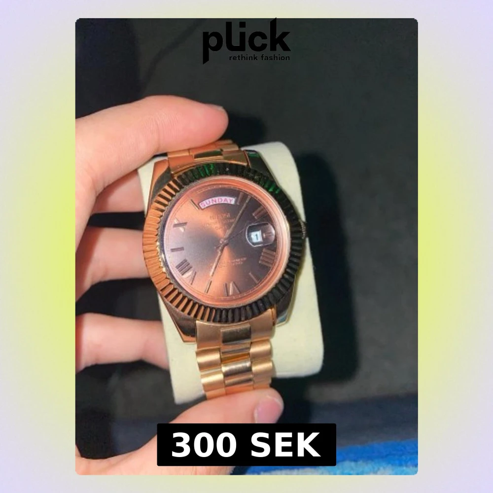 En stainless steel klocka som har rosé-guld färg varo märke (nibosi) den är köpt för 500kr