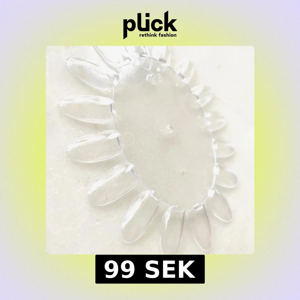 Transparent nagelprovsring med ovala nageltippar. Perfekt för att visa upp olika nagellacksfärger eller designidéer. Enkel att använda och praktisk för både professionella och hemmabruk.