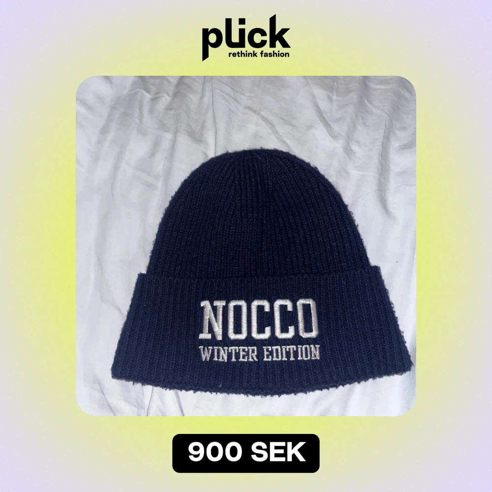 Säljer en snygg mörkblå stickad mössa från NOCCO Winter Edition. Den är perfekt för kalla dagar och har en broderad text framtill. Mössan är i mycket bra skick och passar perfekt för vintern. Håll dig varm och stilren!