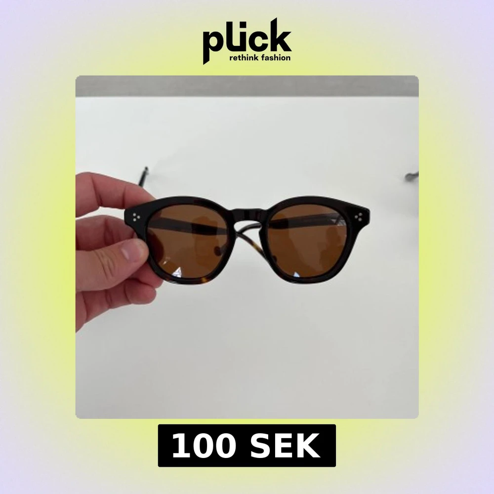 Snygga solglasögon med rundad form och bruna glas. Bågarna är mörkbruna med en klassisk look och små silvriga detaljer vid hörnen. Glasögonbox ingår. Finns fler modeller i min profil.