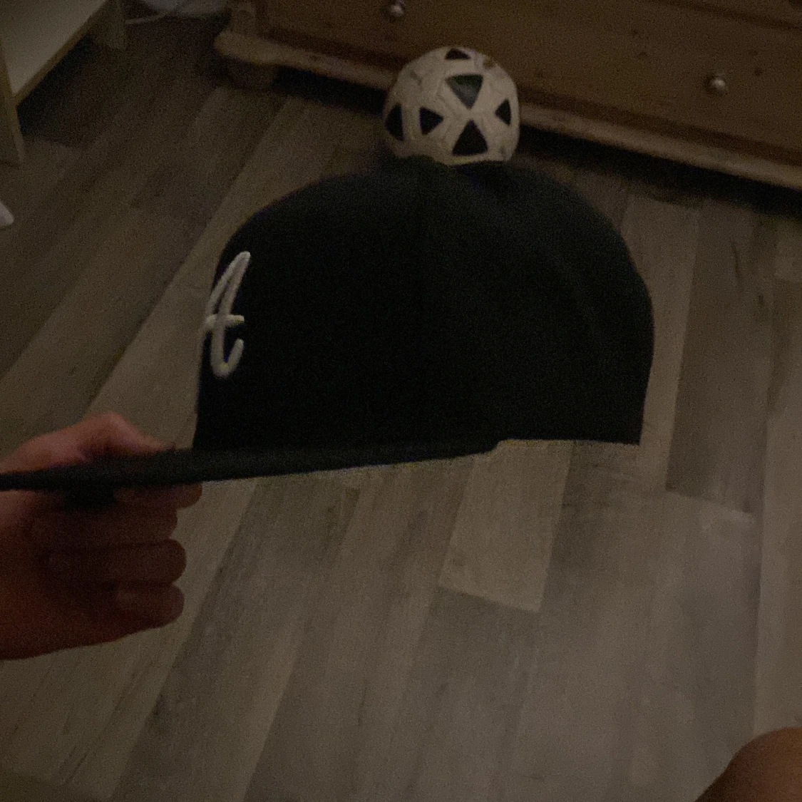 Snygg svart keps med en vit broderad bokstav 'A' på framsidan. Perfekt för en casual look. Justerbar passform baktill.
