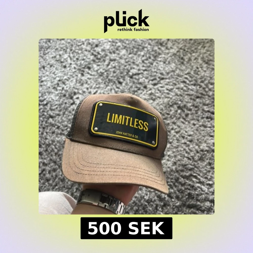 Snygg beige keps från John Hatter & Co med svart och gul patch framtill där det står LIMITLESS. Baksidan är i mesh för extra ventilation och kepsen har justerbar passform. Perfekt accessoar för en cool och avslappnad stil. Kepsen har en liten defekt (repa) på plåten och är solblekt däravpriset. Vid frågor tveka inte att höra av er!😁