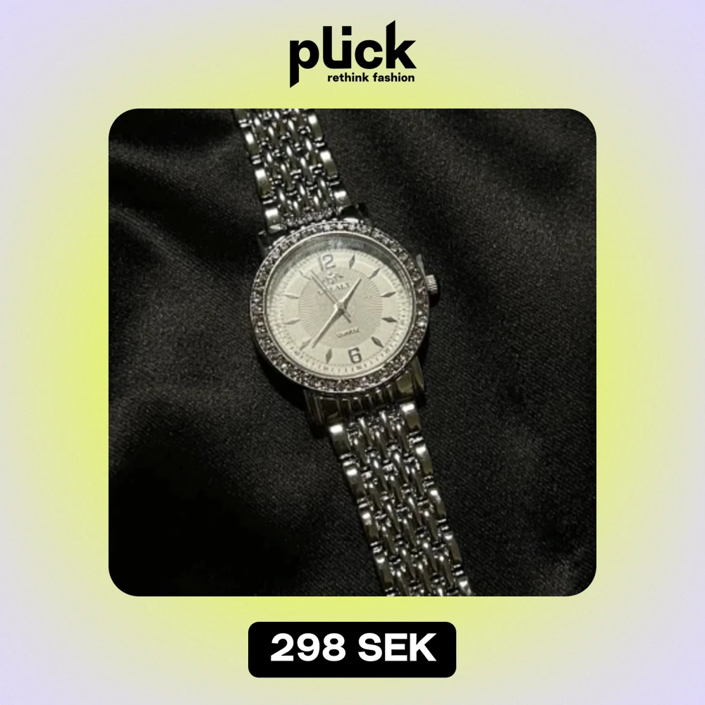 ny klocka,oanvänd i silverfärg med stenar. Nypris 398 nu 298