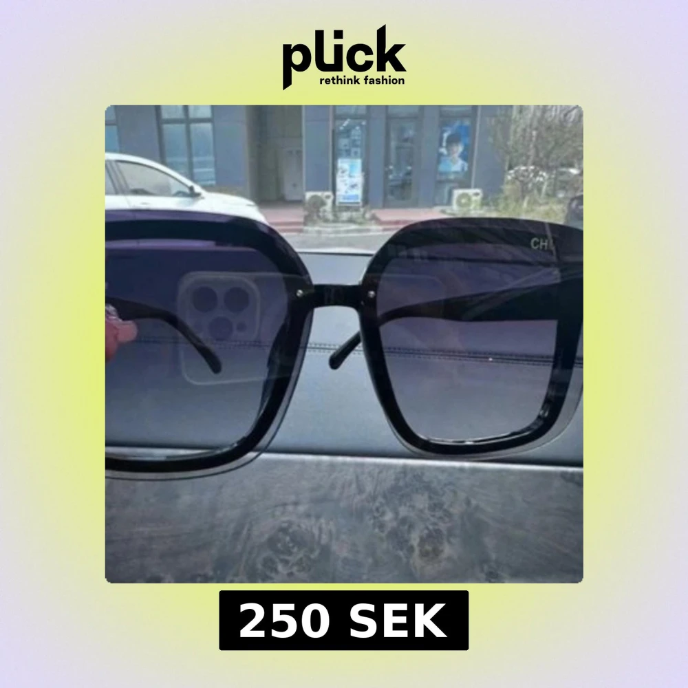 Säljer ett par svarta solglasögon från med stor fyrkantig båge och mörka tonade glas. Kommer med originalfodral och putsduk. Perfekt accessoar för att lyfta din stil och ge en lyxig känsla till outfiten. Aldrig använda, nya.