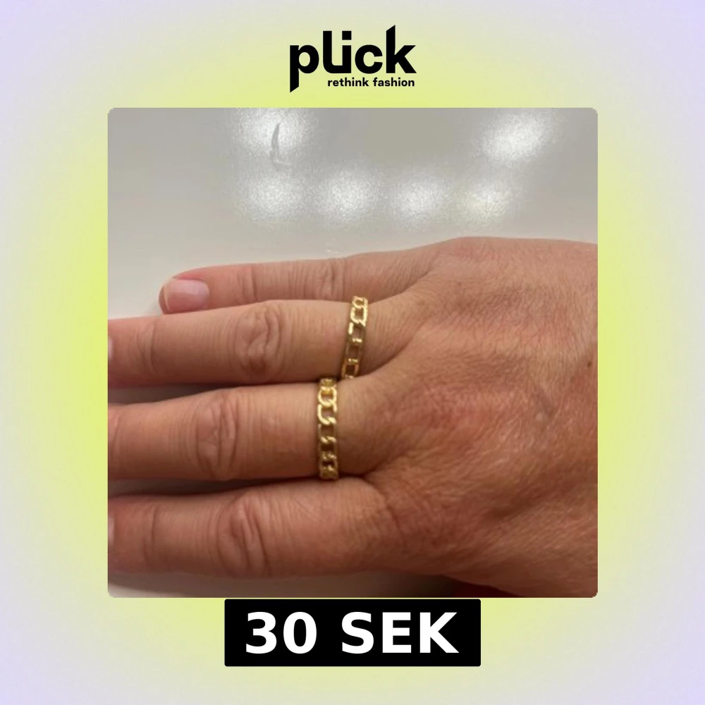 Två guldiga ringar med ett kedje mönster. Ena är lite justerbar.