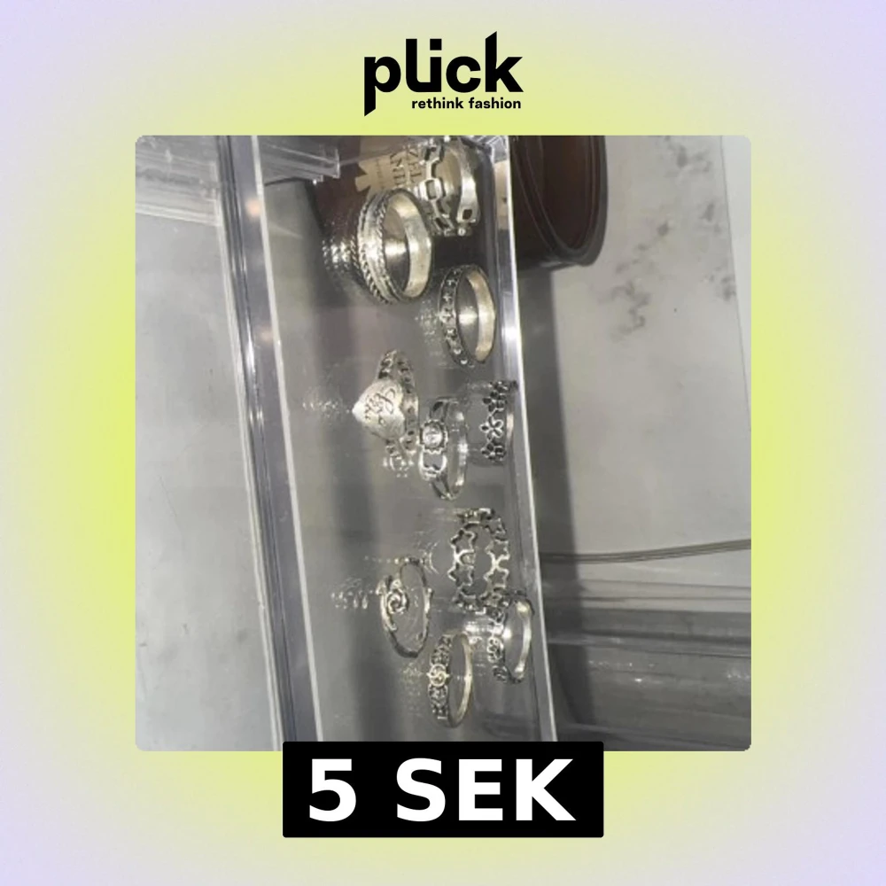 Säljer ett set med flera silvriga ringar i olika designer. Ringarna har detaljer som stjärnor, blommor, hjärtan och en med en liten sten. Perfekt för dig som gillar att mixa och matcha olika stilar på fingrarna. Olika storlekar på alla 😇 Säljes för 5kr styck eller 25 för alla 🥰