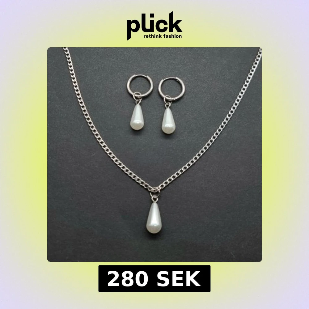 Snyggt smyckeset med halsband och örhängen i silverfärgad metall. Material-rostfritt stål ❤️längd-40cm-45cm, örhängen-3,6cm