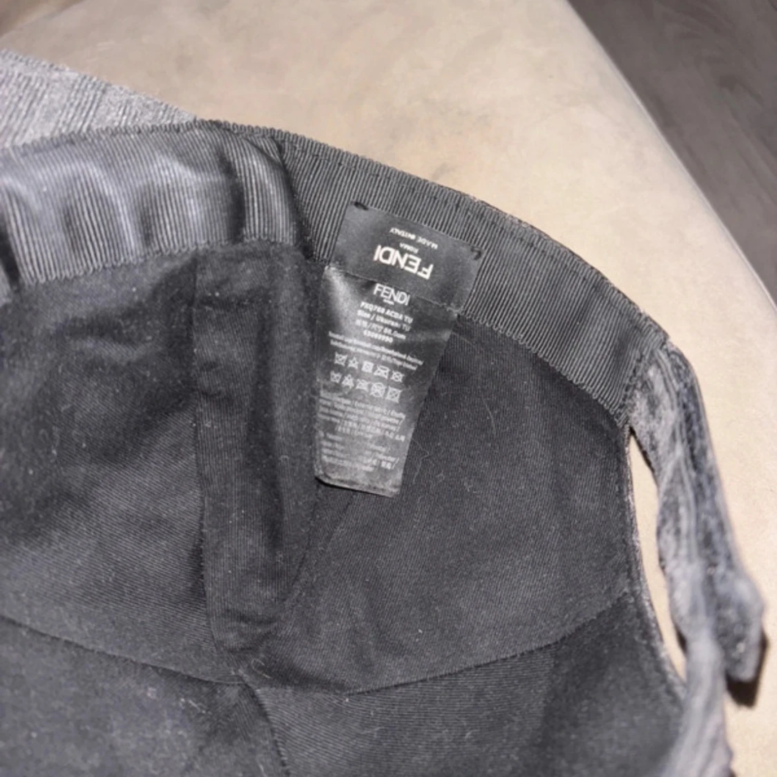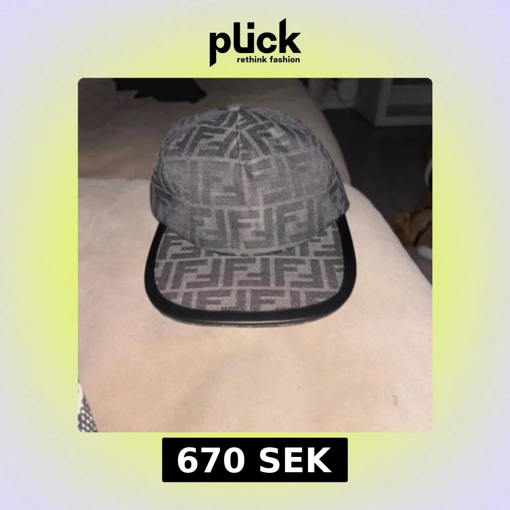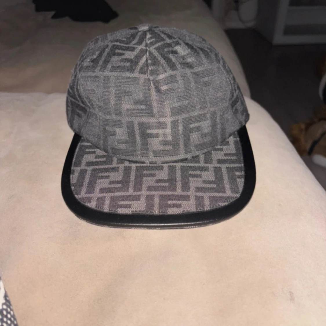 Snygg grå keps från Fendi med ikoniskt FF-logomönster över hela kepsen. Skärmen har svart kant och kepsen är justerbar baktill. Tillverkad i bomullsmix, perfekt för dig som vill sticka ut med en lyxig streetstyle-vibe. Priset är ej hugget i sten. Jag fick den i födelsedagspresent för 6 månader sen:)
