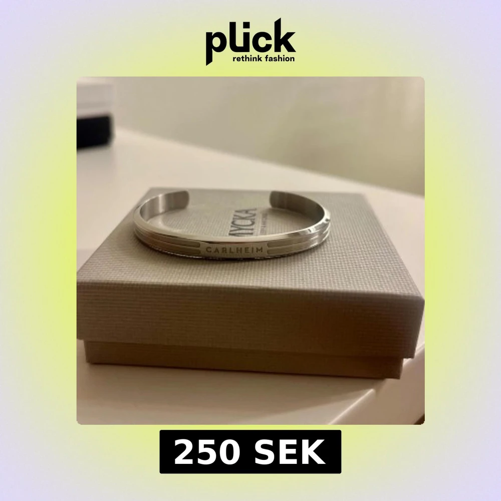 Stilrent armband från Carlheim med graverad logga. Armbandet är stelt och har linjedetaljer längs kanterna. Nästan aldrig använt så inga tecken på användning🤍
