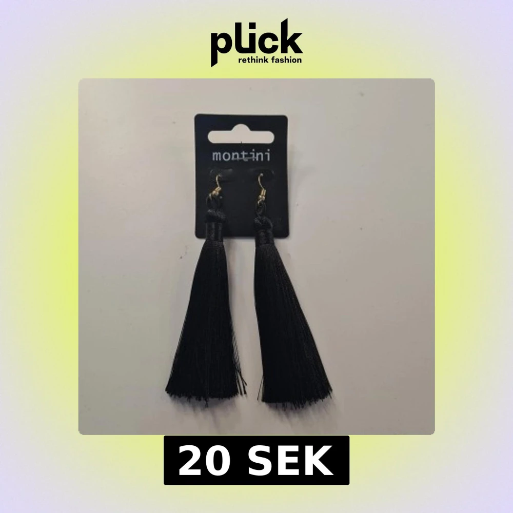 Långa svarta örhängen från Montini med trendiga tofsar i glansigt material. De har guldfärgade krokar och ger en cool statement-look. Perfekta för att lyfta vilken outfit som helst.