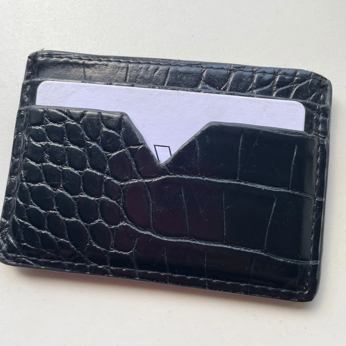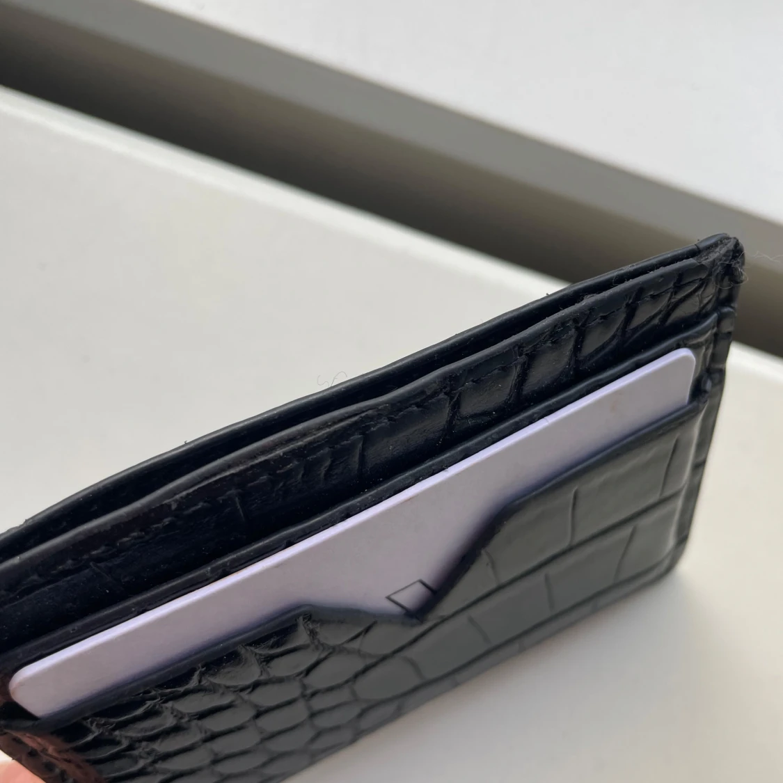 Slimmad svart korthållare från Carin Wester i präglat konstskinn med croco-mönster. Perfekt för dig som vill ha ett stilrent och smidigt sätt att bära dina kort. Snygg och enkel design med plats för flera kort.