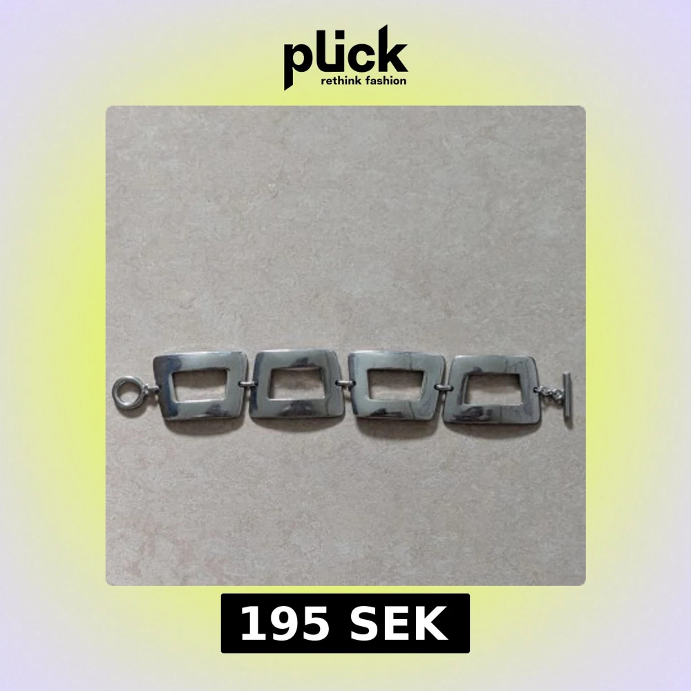 Snyggt armband med fyra rektangulära länkar i silverfärgad metall. Länkarna har en öppen design och armbandet stängs med en klassisk stavlås. Perfekt för dig som gillar minimalistisk och modern stil.