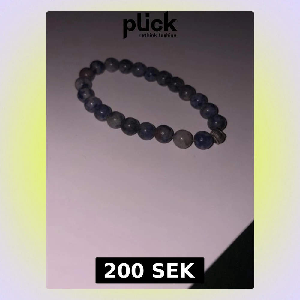 Säljer två handgjorda pärlarmband. Ett med blå och grå runda stenar och metallpärla, och ett med beige, orange och gulmelerade stenar samt en grå kubformad pärla. Perfekt för dig som gillar unika accessoarer och vill ha något som sticker ut.