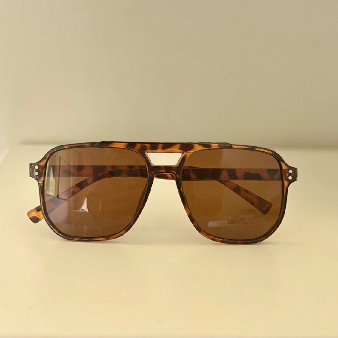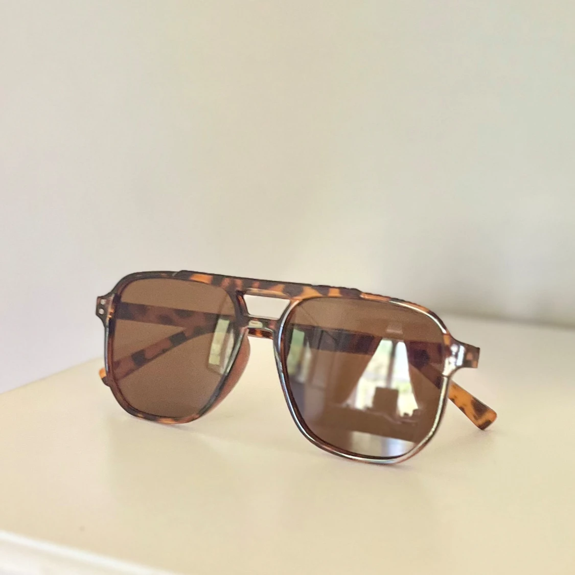 Snygga solglasögon med fyrkantig form och bruna glas. Bågarna har ett coolt leopardmönster i brunt och svart, vilket ger en trendig vibe😎 Perfekta för att lyfta din stil under soliga dagar☀️