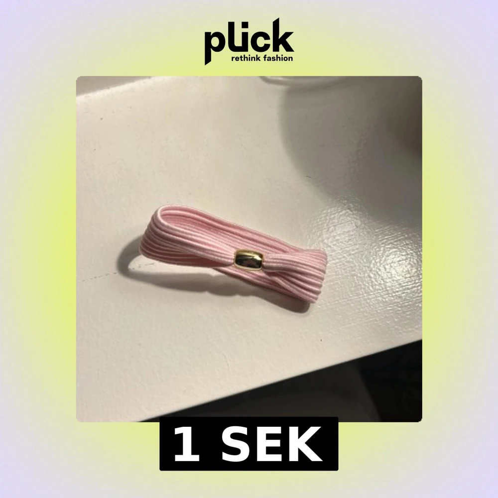 Söt rosa hårklämma med ett diskret randigt mönster och en elegant gulddetalj i mitten. Perfekt för att ge en extra touch till din frisyr.