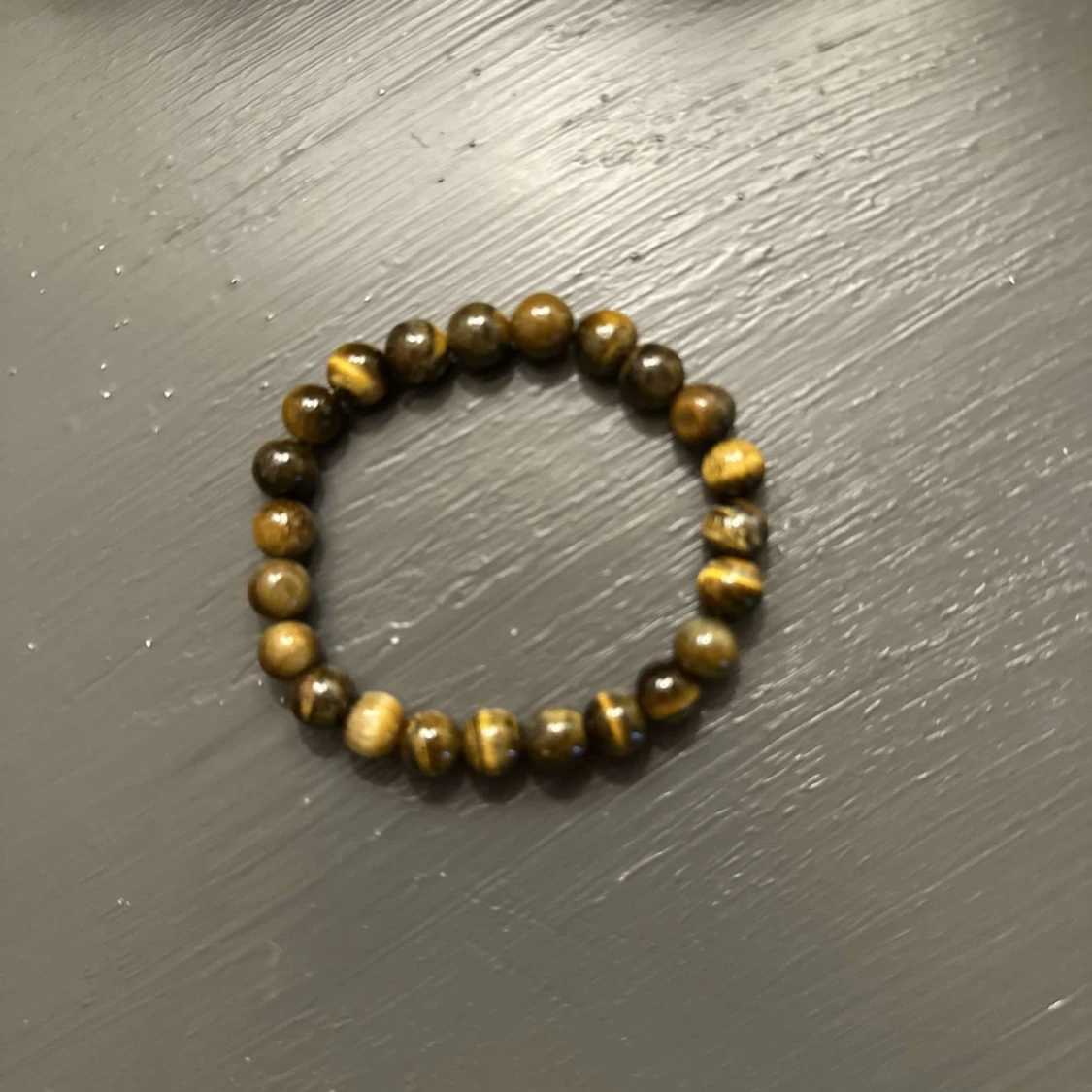 Snyggt armband med runda pärlor av tigeröga i olika bruna och gyllene nyanser. Elastiskt band gör det enkelt att ta på och av. Perfekt accessoar för dig som gillar naturliga stenar och en jordnära stil.
