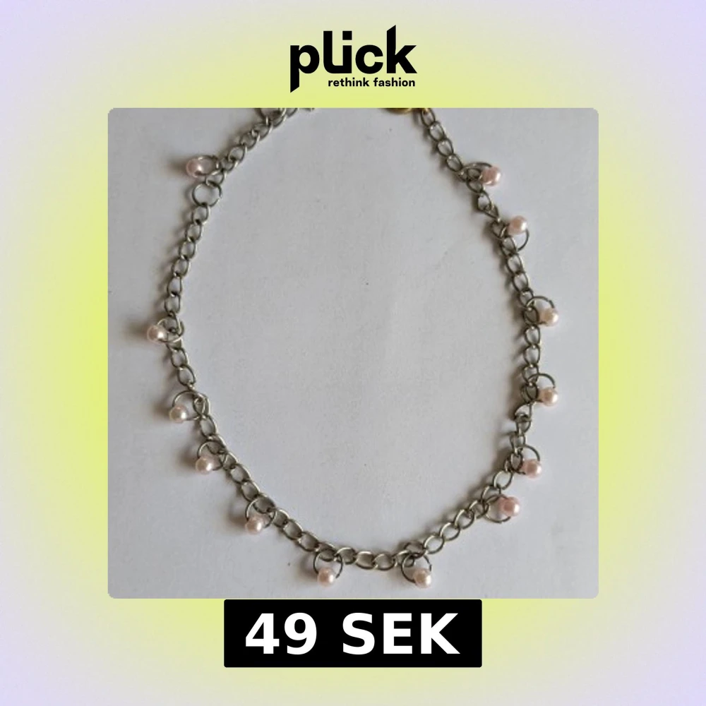 Elegant halsband med silverfärgad kedja och små vita pärlor jämnt fördelade längs kedjan. Perfekt för att ge en stilren touch till din outfit.