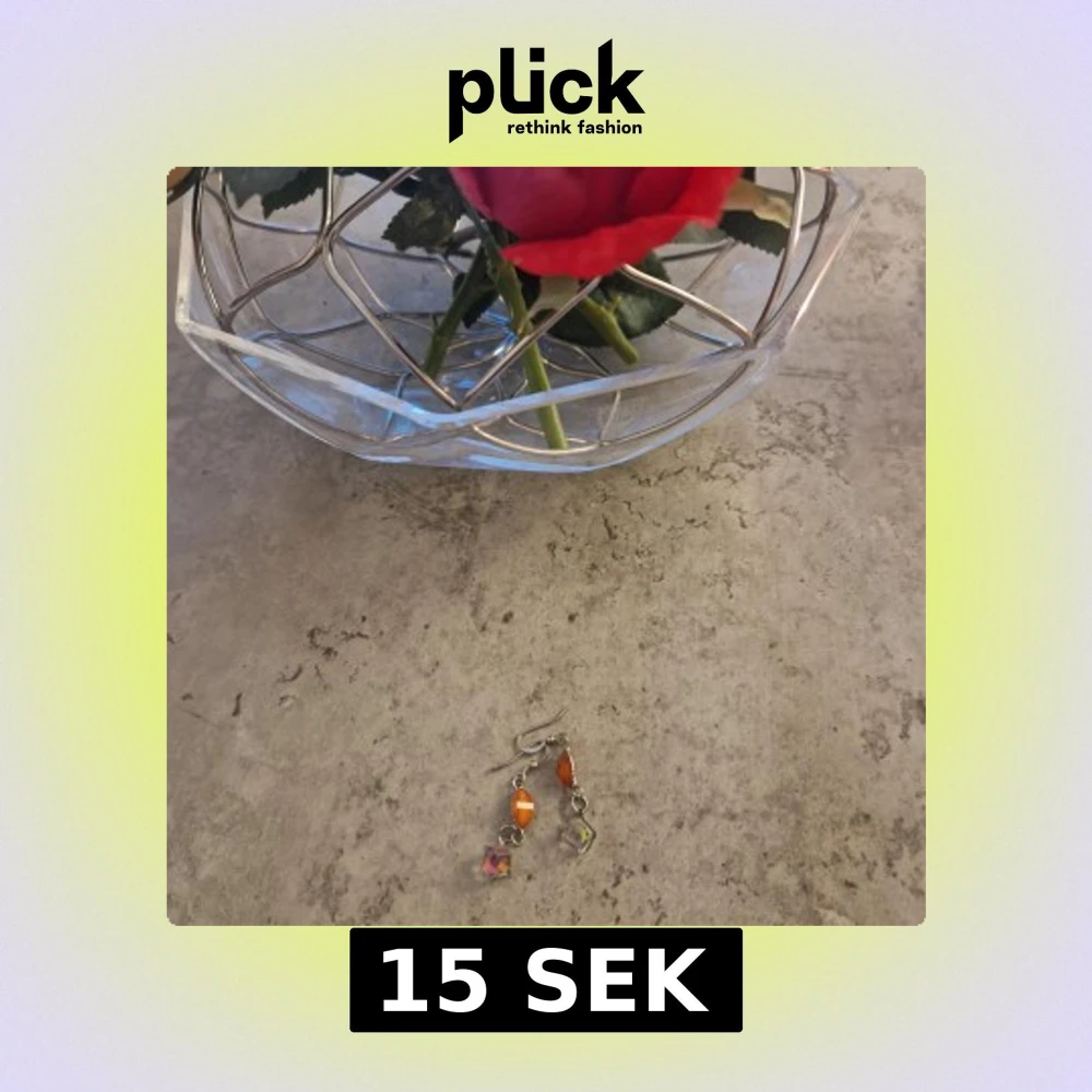 Säljer ett par snygga örhängen med orange pärlor och glittrande kubformade detaljer i silverfärgad metall. Perfekta för dig som vill ha något unikt och färgstarkt till din stil.