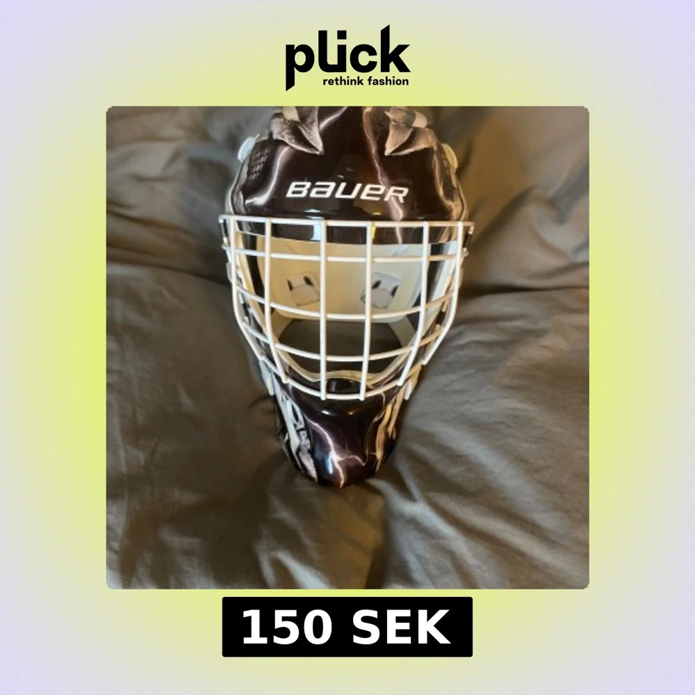 Säljer en cool land hockeymask från Bauer med ett unikt svartvitt mönster. Masken har en vit gallerfront och justerbara remmar för perfekt passform. Perfekt för träningar.