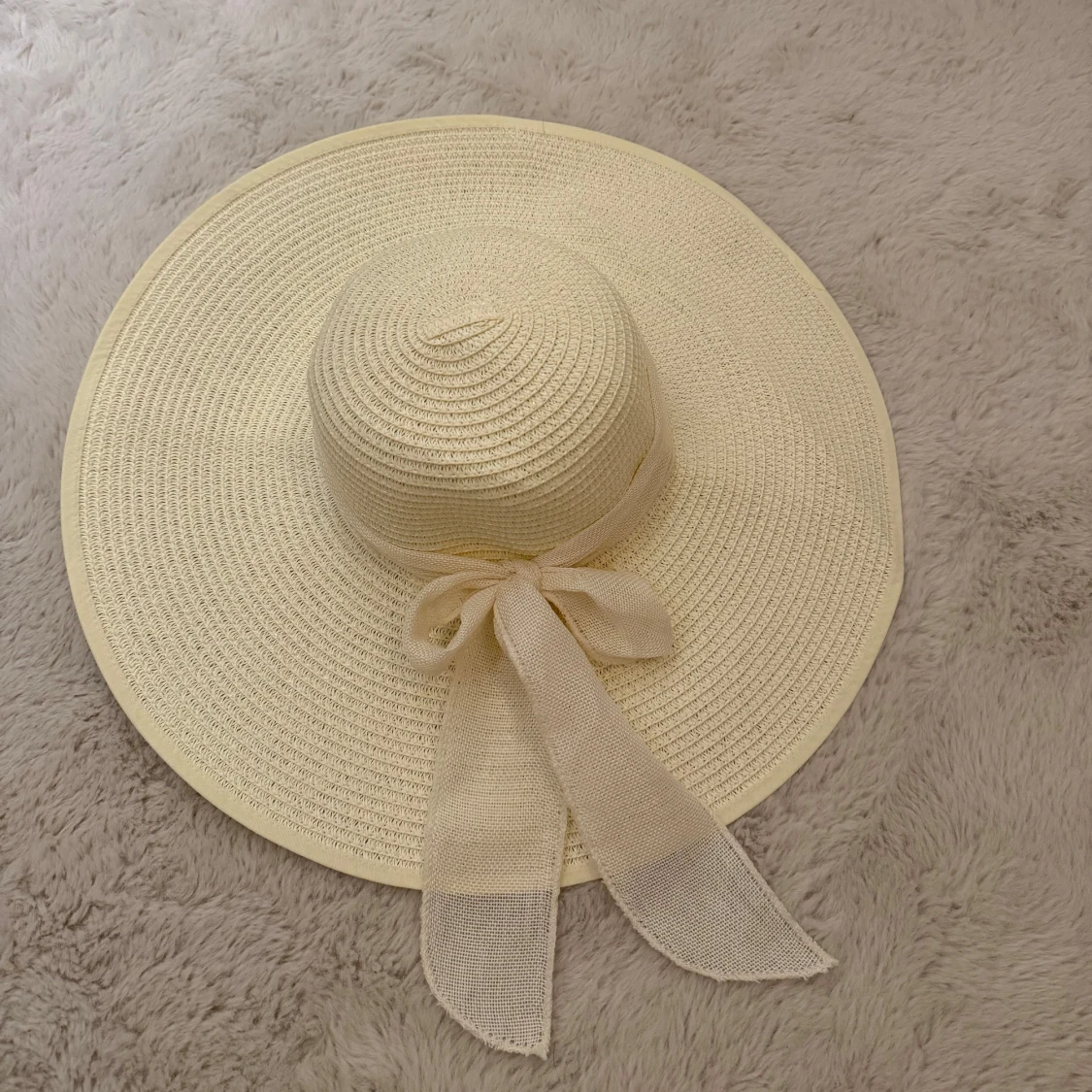 Hej! Säljer denna supersnygga beiga solhatten då den helt enkelt inte kommer till någon användning. Solhatten är stor och elegant med en söt rosett knyten på sidan. Perfekt att ha medans man solar om man vill se lite ”finare” ut. Den har aldrig blivit använd utan endast testad på och därav är den helt i nyskick utan några defekter. Om du skulle fundera över något är det bara att höra av dig, annars går det superbra att trycka på ”köp”.