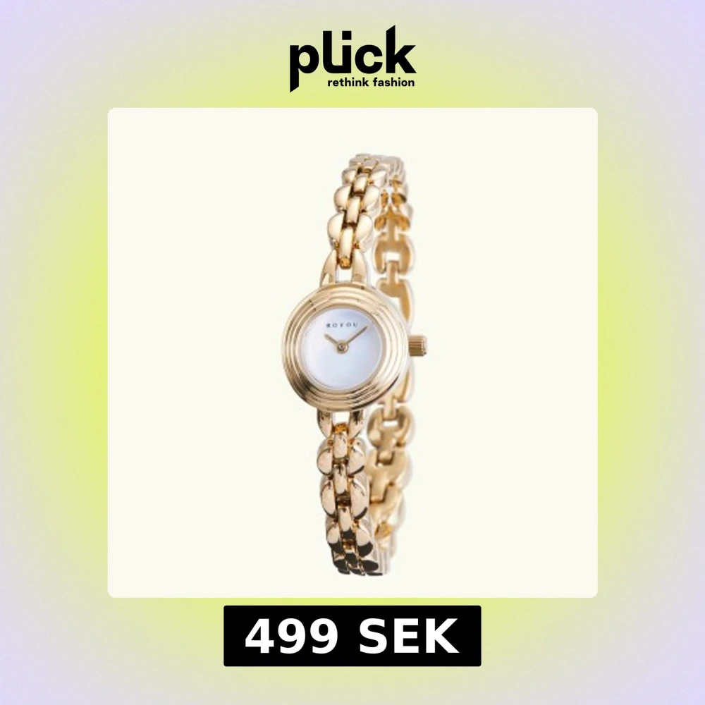 Guldklocka från Bovou med rund urtavla i vitt och guldigt länkarmband. Superfin men kommer inte till användning då jag har flera klockor. Klockans storlek kan justeras och box medföljer. Använd fåtal gånger därav mycket bra skick. Nypris 1195 säljs för 499💗