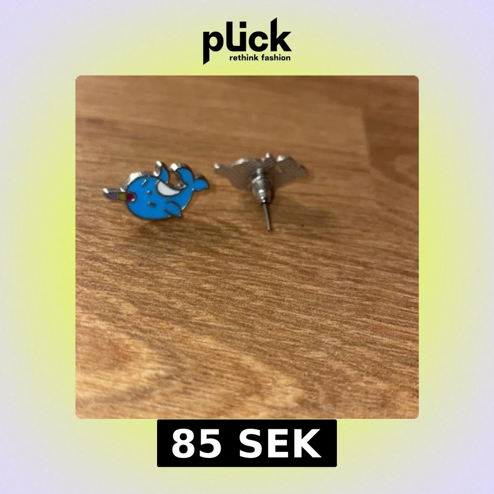 Charmigt smyckeset med örhängen, halsband och ring, alla med ett sött blått narvalmotiv. Perfekt för att lägga till en lekfull touch till din stil. Halsbandet har en ganska tunn kedja och narvalhänget matchar örhängena och ringen. Ringen går att ändra storlek på. Jag tror de är gjort av nickel. Har alldrig använt💞