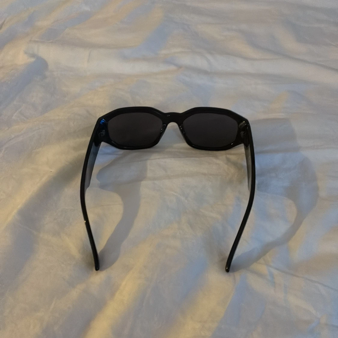 Snygga svarta solglasögon med markerad, kantig båge och mörka glas. Perfekta för dig som vill ha en stilren och modern look med lite edge.